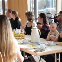 In entspannter Atmosphäre gab es für die Eltern bei Kaffee, Kuchen und guten Gesprächen die Gelegenheit zum Kennenlernen und Austauschen. Die jungen Eltern konnten sich miteinander vernetzen, neue Kontakte knüpfen und erhielten hilfreiche Infos rund um das Familienleben in Neuhof.